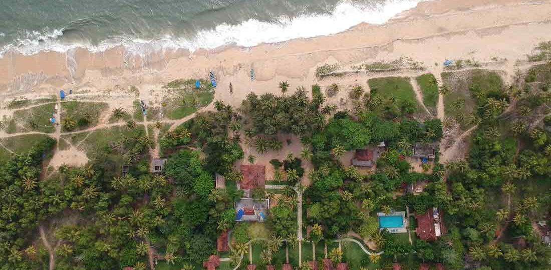 ‘The sea-side village experience set on 30 acres with coconut groves, lily ponds, fruit trees and a large organic farm.’