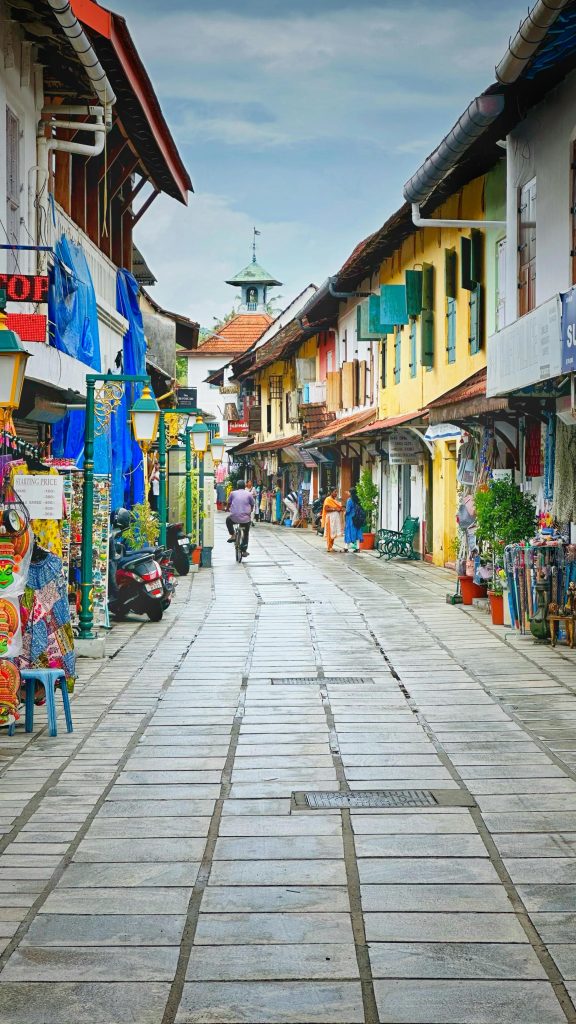 Together, Mattancherry and the bustling neighborhood provide a window into the history and multicultural traditions of the area. As soon as you enter Fort Kochi, you will be taken back in time. It is thought that the name of the place comes from “kochu azhi,” which means “little lagoon” in Malayalam. Portuguese, Dutch, and British colonial architectural styles are mixed together along the streets. As you can see, traditional building coexists alongside modern cafes and stores, creating a harmonious blend of the past and present.